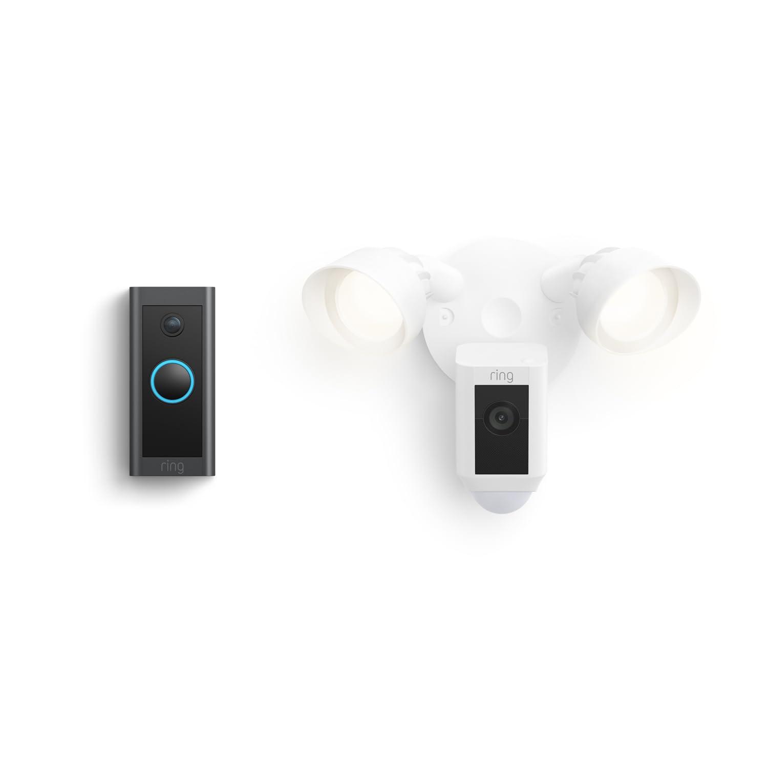 This bundle contains Ring Video Doorbell, Wired and Ring Floodlight Cam Wired Plus (White).