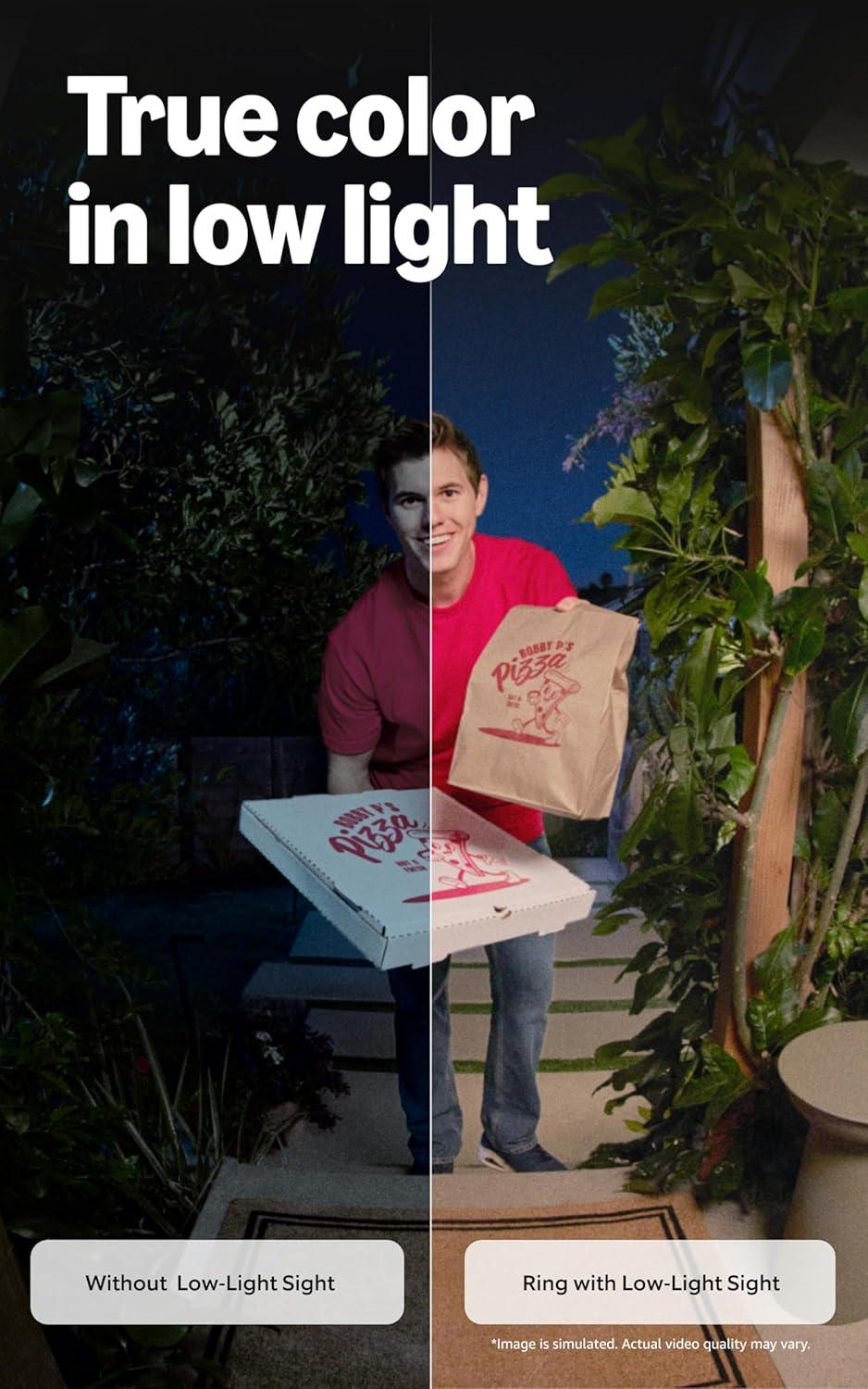 See in the near-dark — With Low-Light Sight on both your doorbell and camera, get a full-color view in the near-dark. Nearby street lighting is all you need.